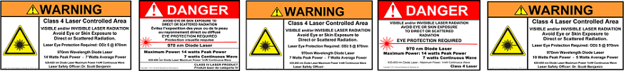 Laser Controlled Area (LCA) signs, often referred to as laser safety signs, must be placed at every entrance to any area that a Class 3 or Class 4 laser is being utilized.The LCA signs are specific to the specific laser device and region of the country where the laser is being utilized.